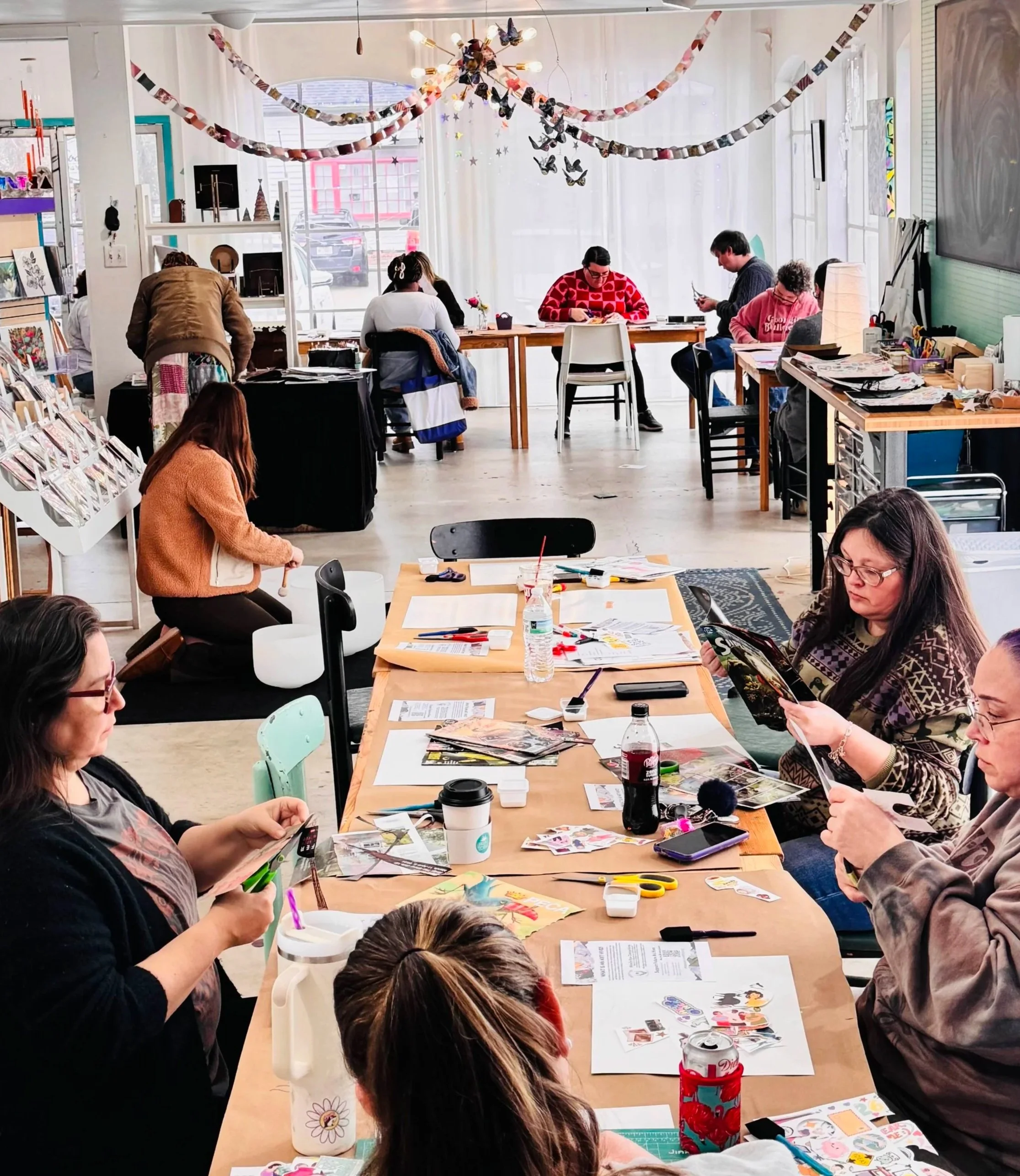 An Art Hive is an open, community-based art-making space that welcomes everyone as an artist. These inclusive spaces encourage self-directed creativity, connection, and skill-sharing across ages, backgrounds, and abilities. Art Hives focus on access, shared resources, and the belief that art-making is a natural and valuable human practice.