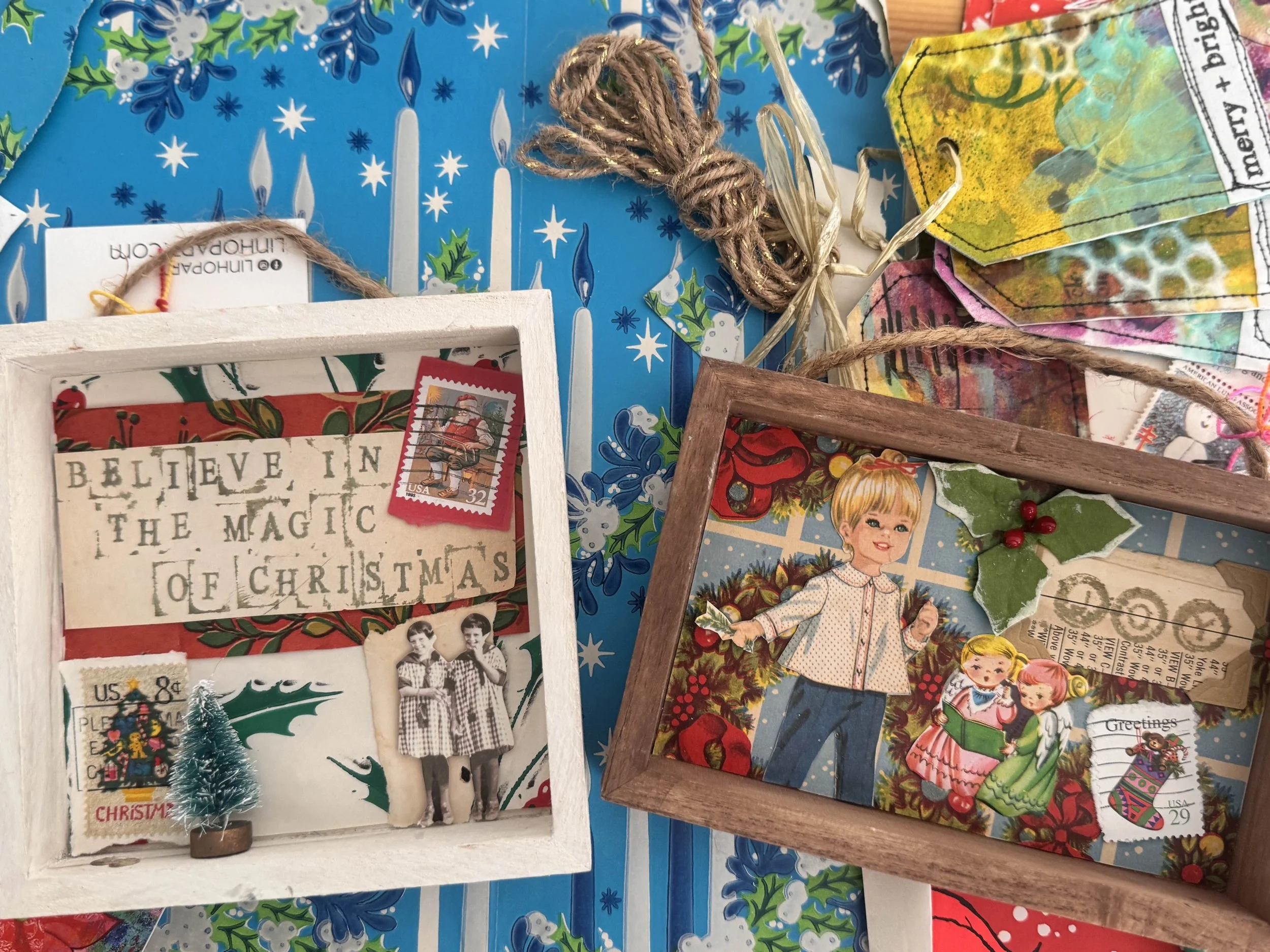 In this Session, we will be created mixed media winter shadow boxes! Dive into the magic of winter by creating mixed media shadowboxes that bring frosty scenes to life! Craft cozy, layered winter wonderlands. Perfect for holiday decor or gifting, these shadowboxes capture the playful spirit of winter in a small, artful keepsake.