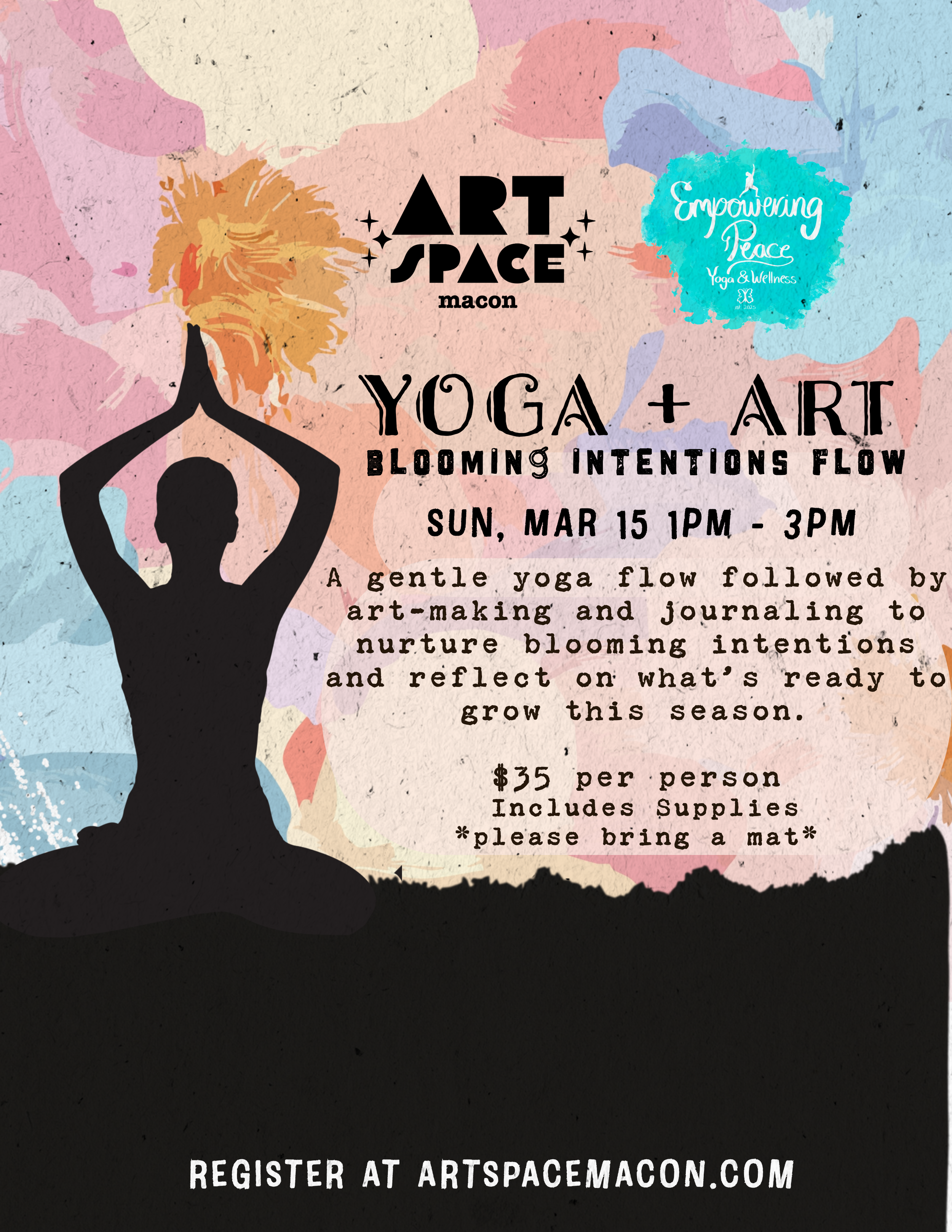 Join us for Blooming Intentions Flow, a grounding yoga + art experience that blends movement with meaningful reflection. We’ll begin with an intention-setting meditation. From there, we’ll move through a slow, nourishing yoga flow to embody and energize those intentions.